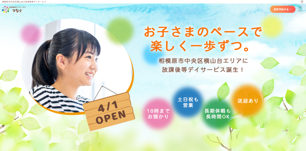 2025年4月に新規開設された放課後等デイサービス「つなぐ」のホームページを制作しました。