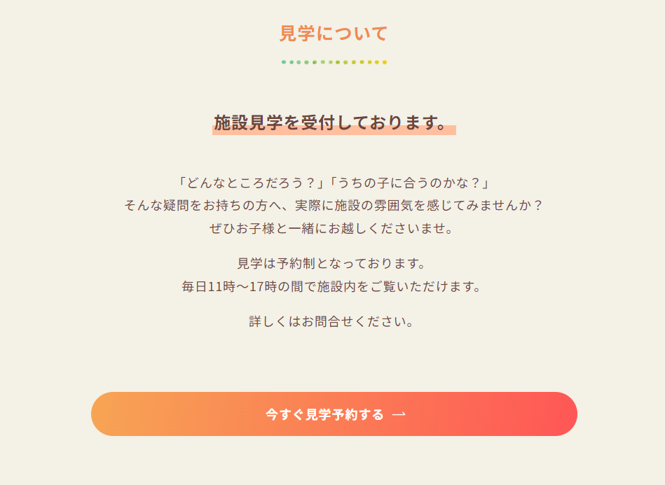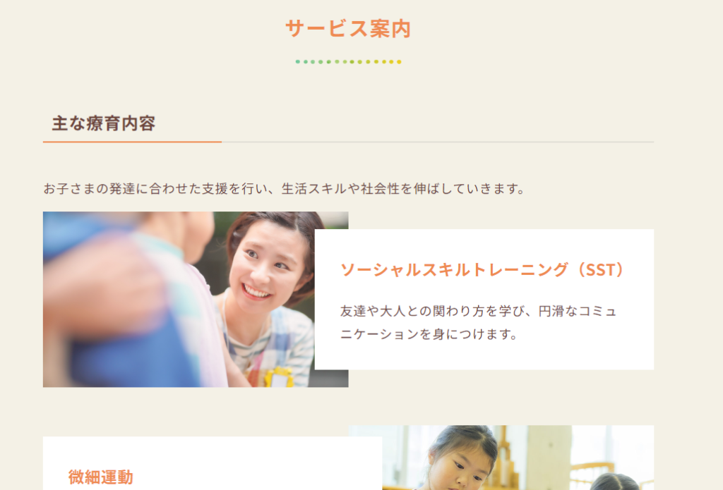 理念・療育内容・1日の流れなどを明確にし、利用前の不安を和らげる情報設計を行いました。